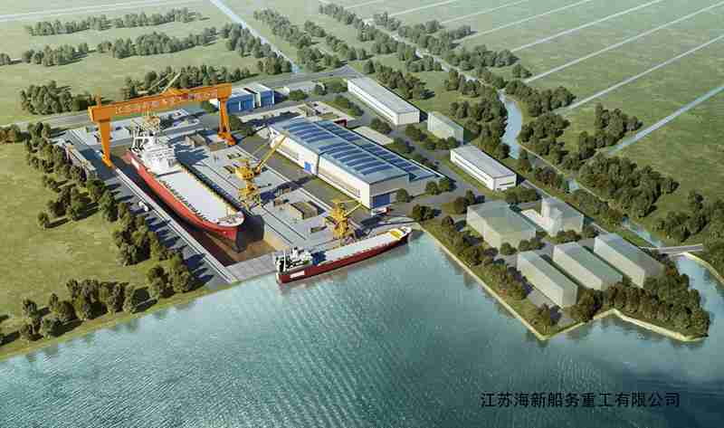 江蘇海宏建設工程有限公司于2007年在江蘇省海門市投資興建了江蘇海新船務重工有限公司(簡稱海新重工)。海新重注冊資金5億元人民幣,占地17.5公頃,臨水占用自然岸線約200米,材料碼頭和舾裝碼頭各一座,大型干船塢一座,配套車間面積3萬平方米,擁有各類造船專用配套設備。船廠具備建造各類特種工程船舶、海洋工程裝備、集裝箱輪、散貨輪等產品的能力。