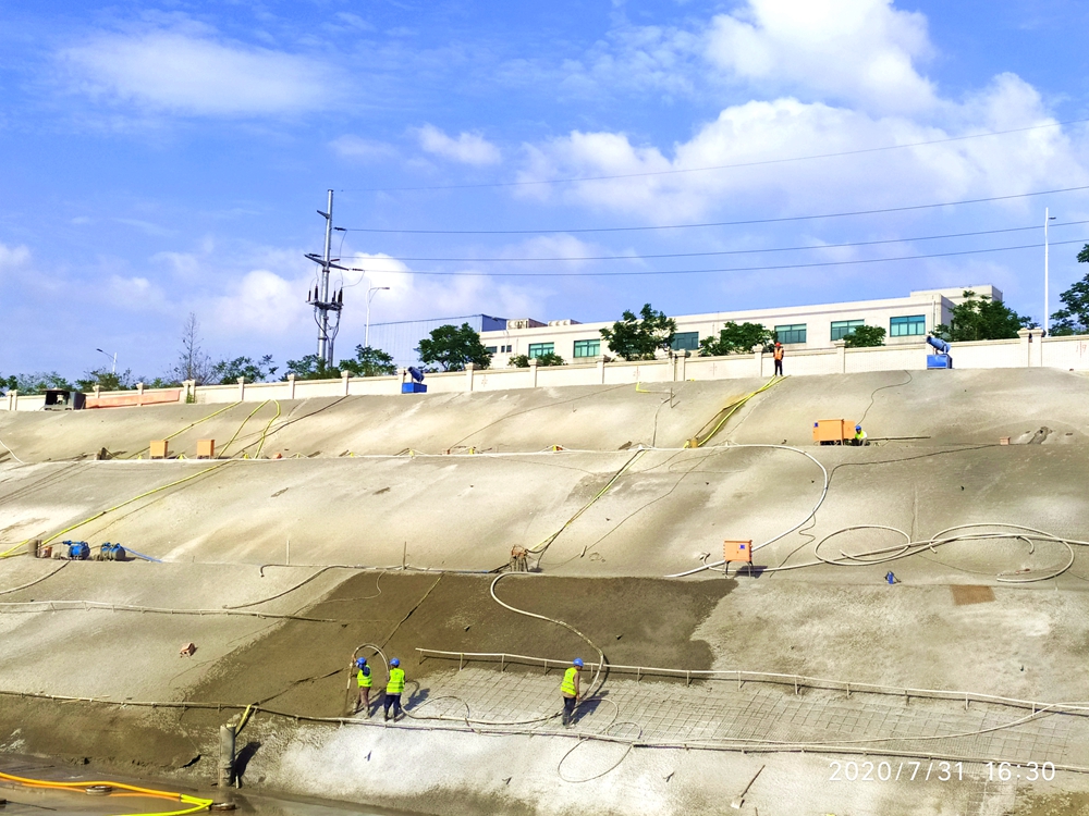 本工程塢室采用大開挖建造方式,土方開挖是本工程的一個關鍵工序,土方開挖在深井完成15~20天后開始。自5月25日開始土方開挖,目前完成開挖總量80萬m3,噴坡4萬m2,挖出的土方量能把一個標準足球場堆高近200m。