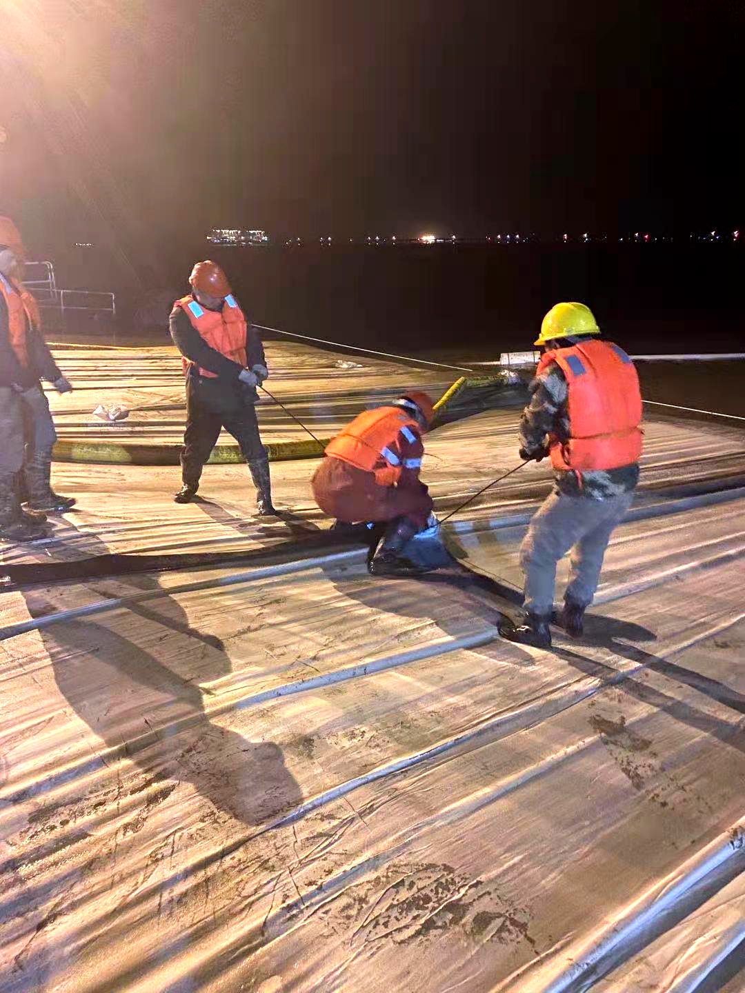 項目部將密切關注后續天氣情況,所有施工以安全為前提,吸砂船提前做好采砂準備,及時匯報砂源情況,施工時加強聯系,避免因移船和風浪造成輸砂管斷裂。在施工期間,項目部針對每層砂袋位置的問題,在與青鋪排3號船長及吸砂船船長進行深度的研究后,決定及時改變吸砂船位置,調整輸砂管道,確保后續施工順利,同時督促吸砂船密切關注砂源情況,優先尋找良好的取砂點,確保工程質量。鋪設軟體排時,項目部時刻和浮吊船保持聯系,協調好第二天的連鎖塊使用計劃,在風浪條件良好的施工階段,抓緊鋪設軟體排,保證材料持續供應,協調后續拋石施工,爭取在軟體排鋪設結束后,銜接好下一道拋石工序,抓緊一切時間,爭取早日完工,彰顯海宏形象!
